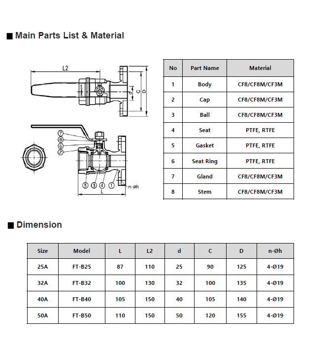 목록 본문 볼밸브(F/T) 한쪽은 Flange / 다른 한쪽은 Threaded 타입의 볼밸브 Working P. 1000PSI Temp. -20℃ ~ 100℃ End Conn. Flange(KS,JIS,ANSI), Theaded(PT,NPT,DIN) Meterial SCS13, SCS14, A351-CF8/CF8M/CF3M 상세설명